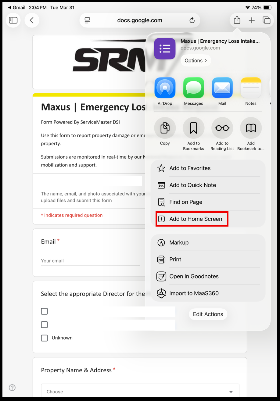To Bookmark and add a Google Form shortcut to your Home screen on your phone, follow the steps below.
