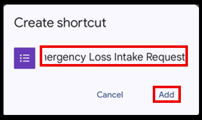 5. Enter the name you would like to show on the Home screen shortcut then tap Add.