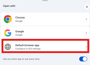 1. Tap the link to the Google Form you would like to bookmark and add to your phone's home screen > select Default browser app.