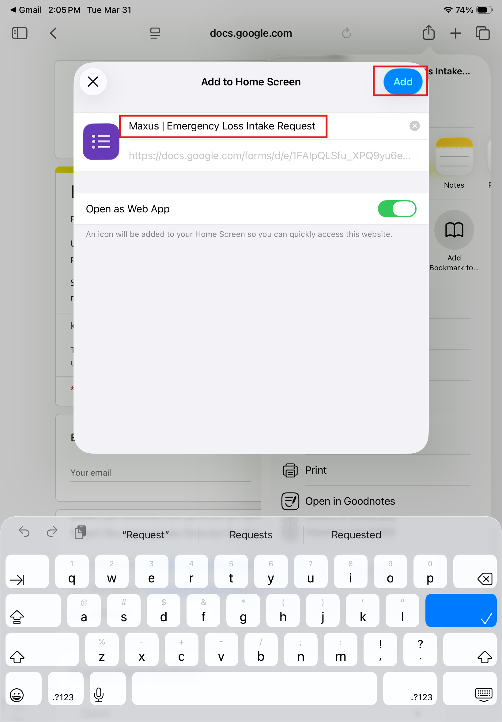 5. Enter the name you want shown for the form on your Home Screen > Add.